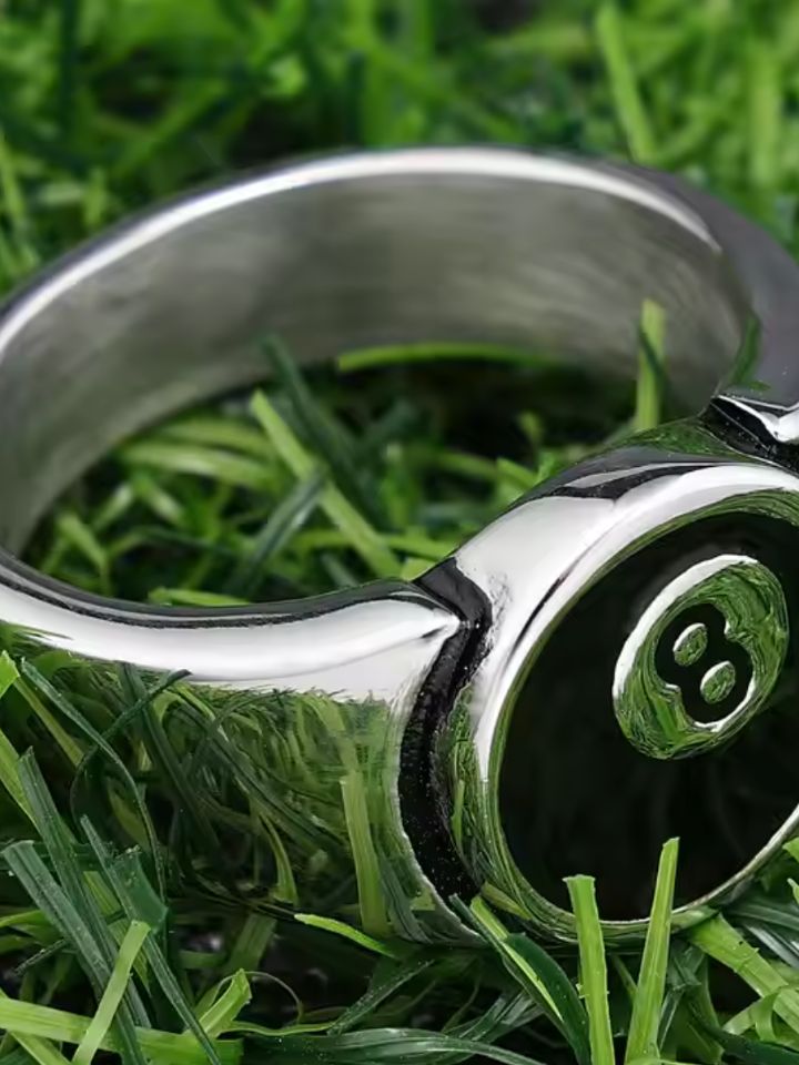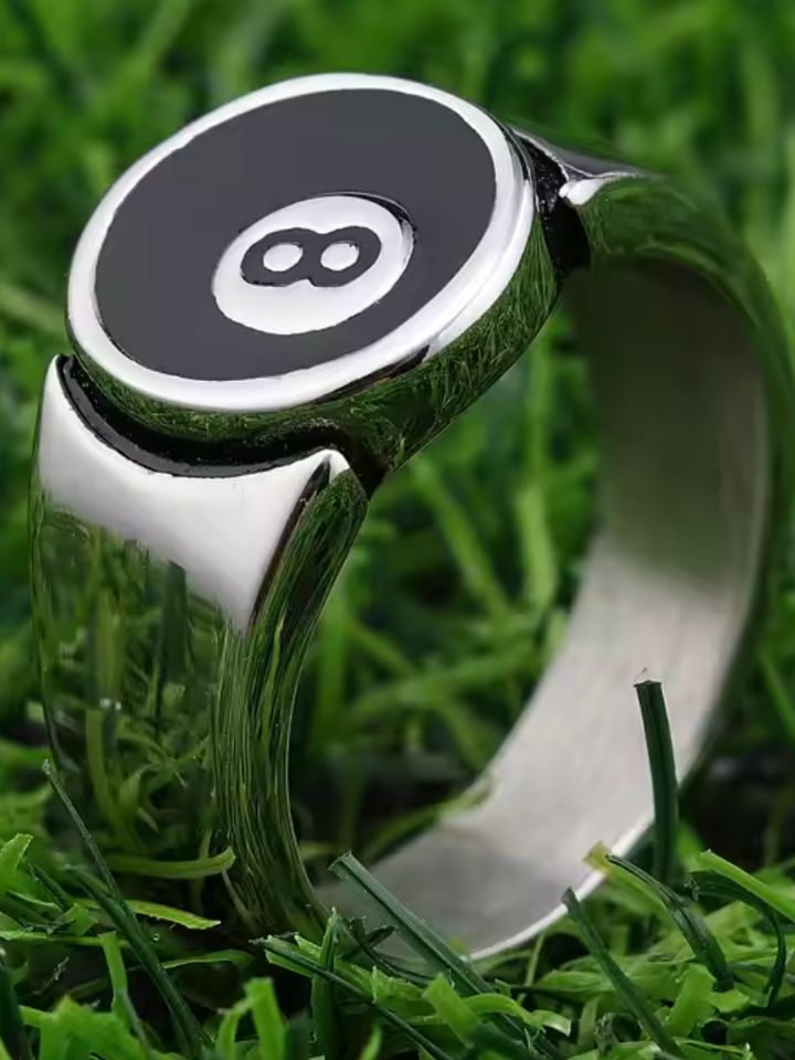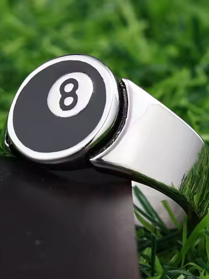 The Ring '8 Ball Statement' is a precision-cast statement ring shaped around the iconic 8-ball — a symbol of risk, fate, and calculated moves. Deep black enamel fills the sphere for sharp contrast.