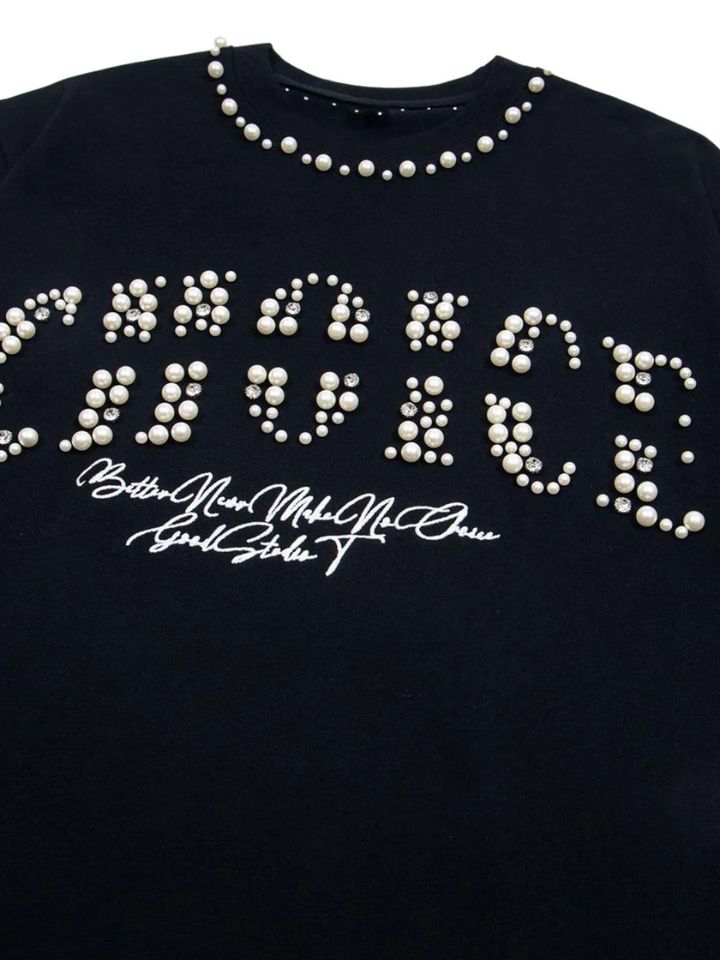 The Asteric "Choice" tee is crafted with a dense weave that creates a deep black with a slightly satin finish. Its oversized cut highlights a relaxed fit, while the minimalist design brings presence without losing subtlety. Perfect for those seeking a versatile piece that flows from day to night with comfort and attitude.