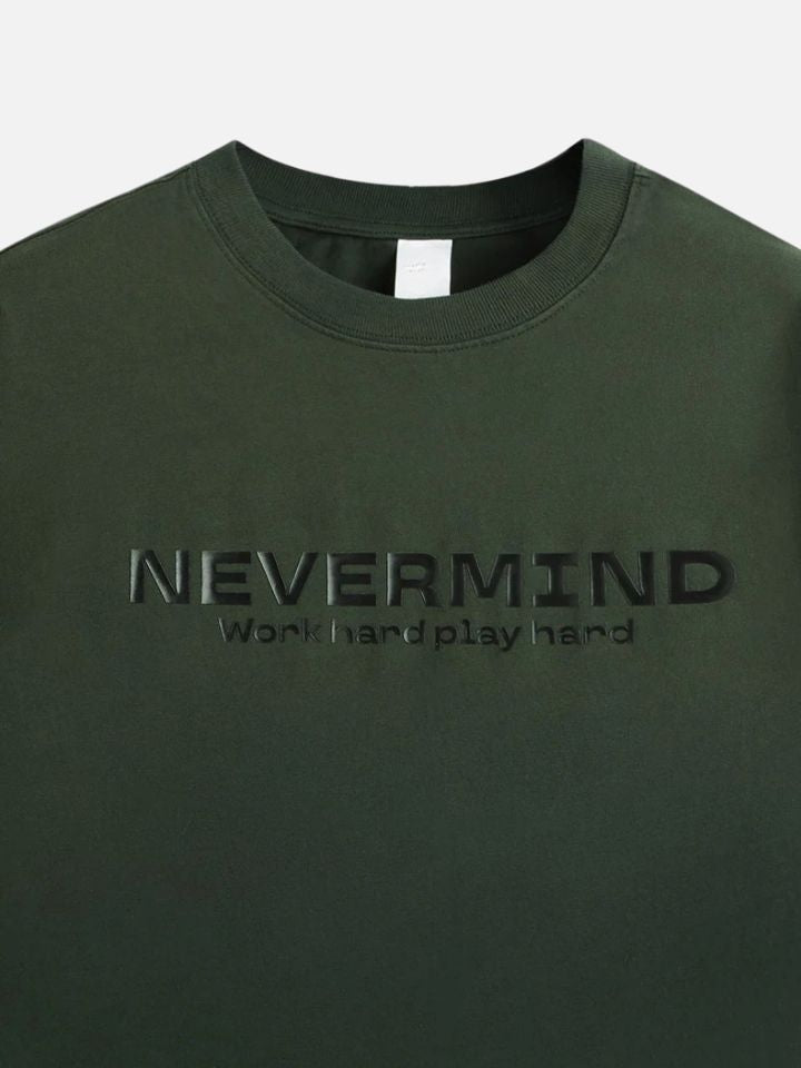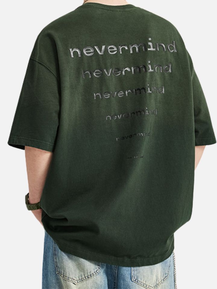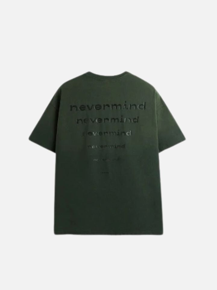 The Asteric "Nevermind" tee combines a relaxed aesthetic with a contemporary edge. Crafted from premium cotton, its structured and roomy cut delivers a comfortable, commanding fit. The washed effect gives a soft, urban finish, while the subtle "Nevermind" chest print radiates a carefree vibe — perfect for those who prefer their style to speak quietly.