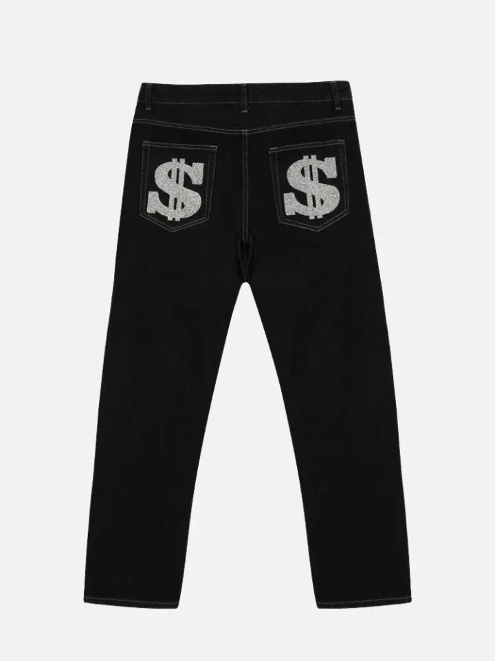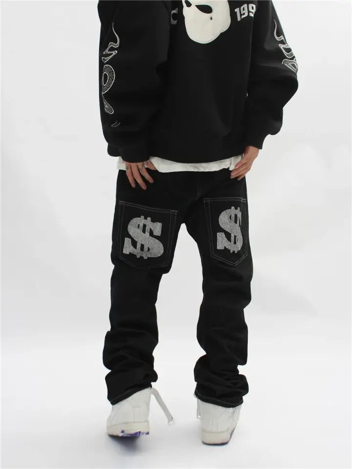 Men's Black Straight Denim Pants 'Dollar'