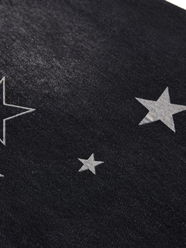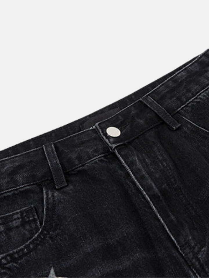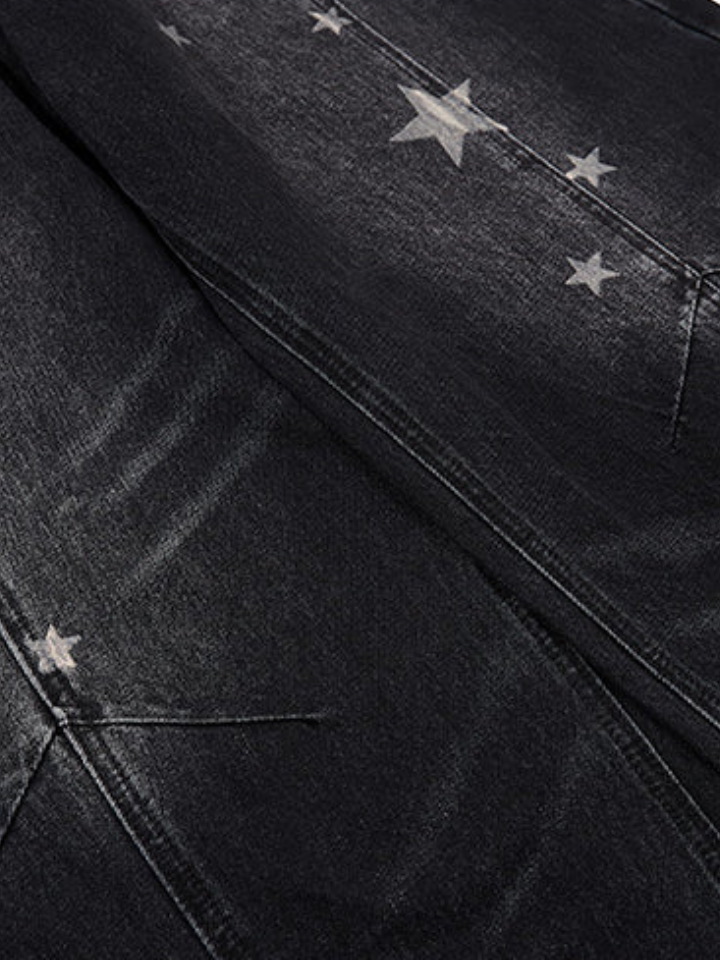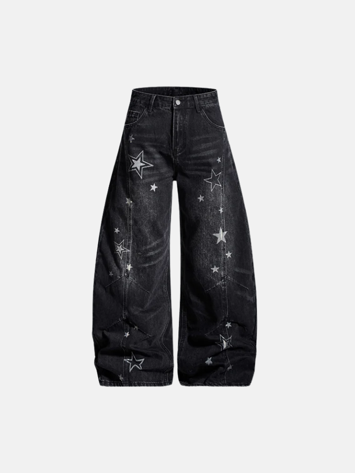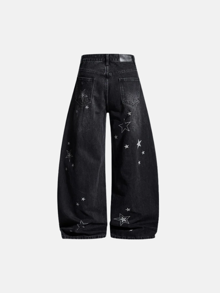 The Baggy Jeans 'Vand' is a wide-cut baggy pants with a star motif scattered across the surface — clean proportions in maximum width with celestial detailing.