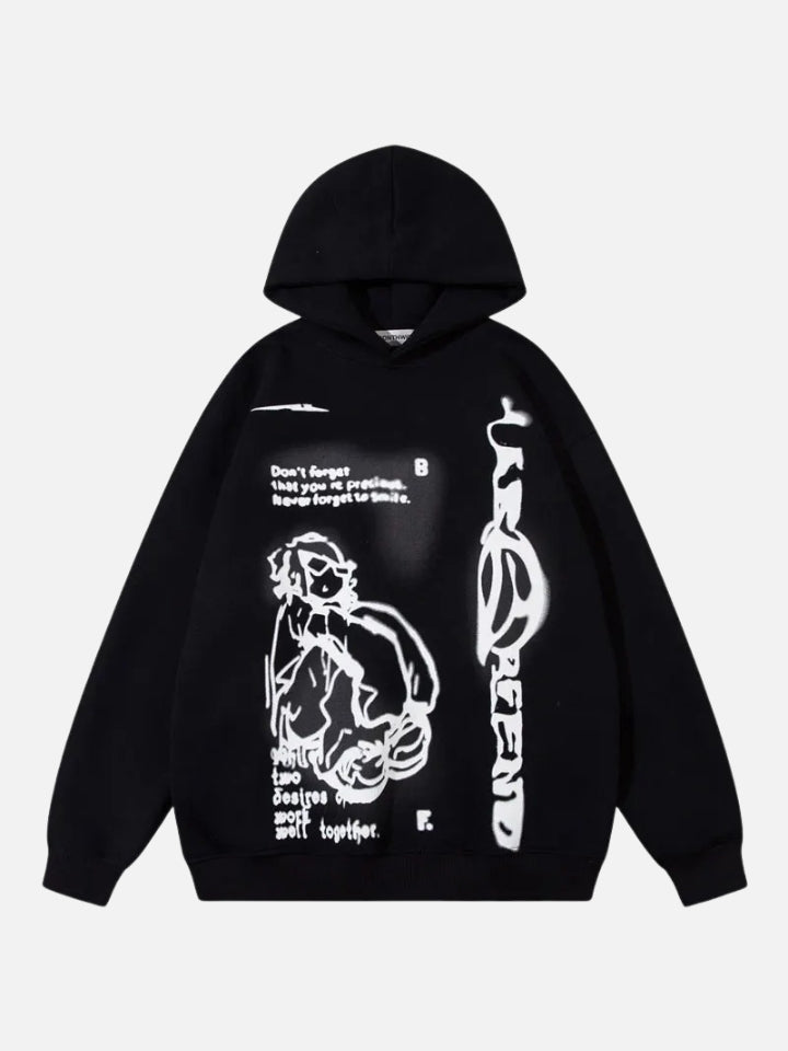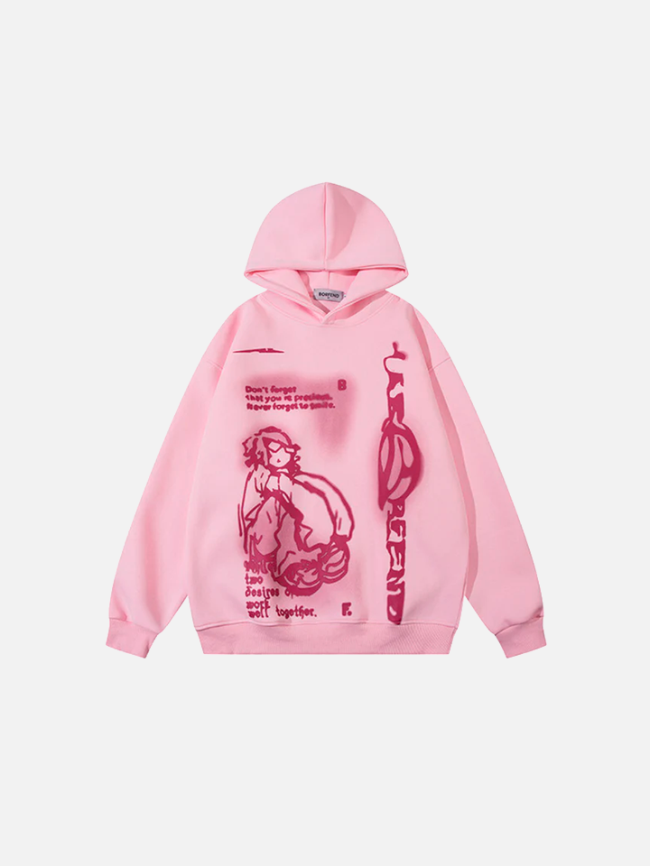 The Asteric Cartoon Print hoodie is pure urban attitude. Available in white, black and pink, this unisex long-sleeve piece is crafted from premium cotton with an oversized streetwear cut that keeps things fresh and authentic.