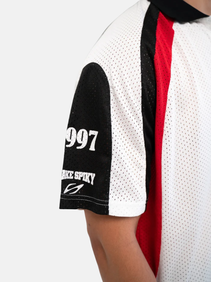 The Oversized Tee 'Clutch' is a spikey-graphic tee with a sharp, angular motif spread across the chest — the spike energy is in the graphic's visual tension.