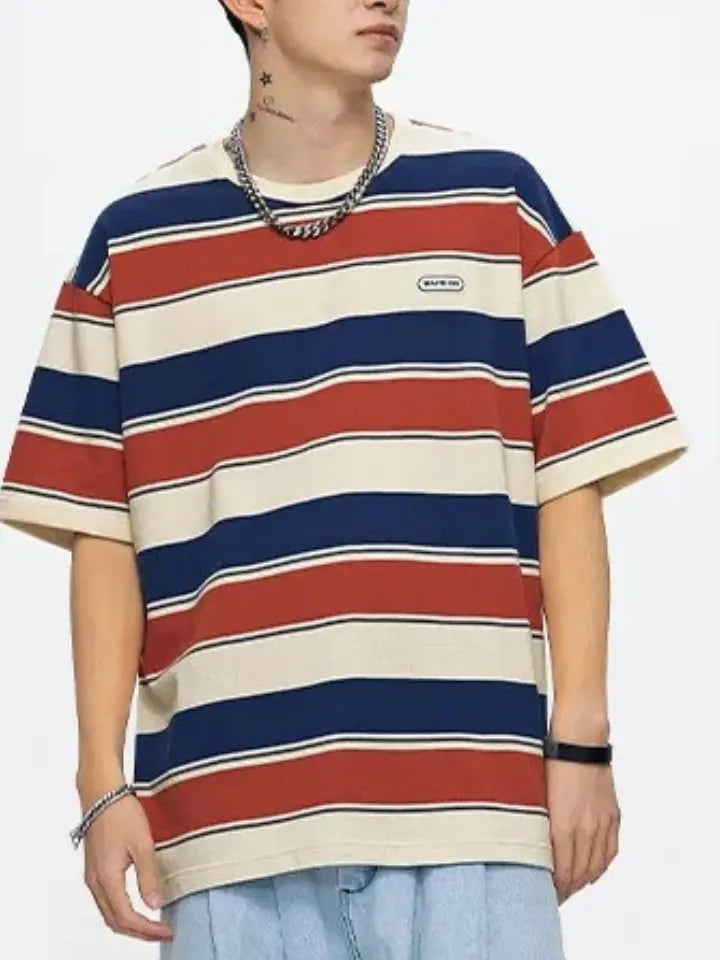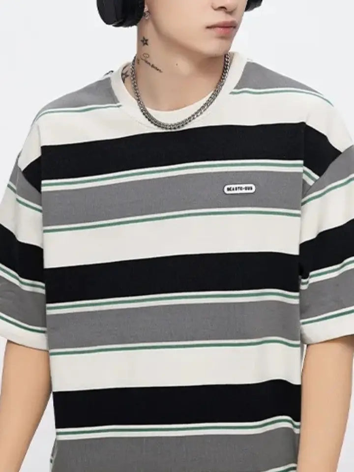 Make a bold style statement with the Asteric Striped Oversized Cotton Tee 'New Contrast'. More than just clothing — an authentic expression of your personal style. Combining elegance and comfort, it's the versatile tee perfect for any occasion. Be yourself, be Asteric.