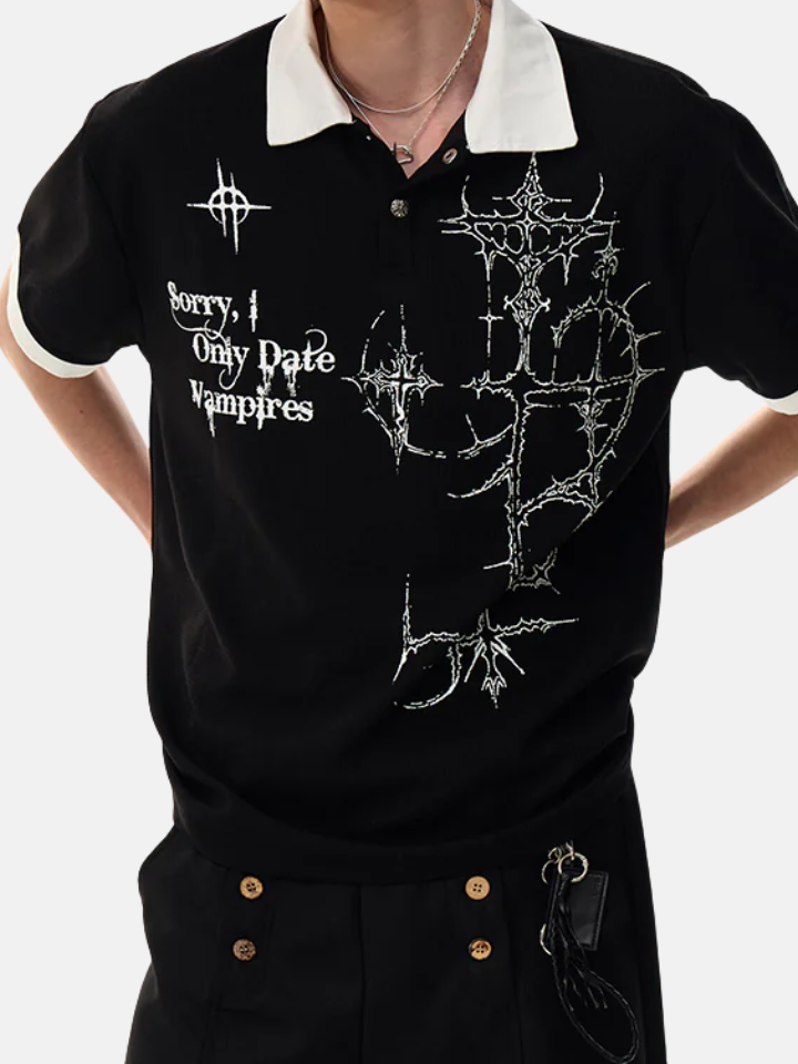 The Oversized Tee 'Nightfall' is a vampire-motif tee with a Nightfall graphic — the nocturnal reference in dark tones and sharp graphic elements creates a piece for those who move better at night.