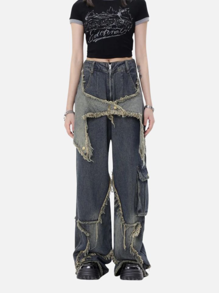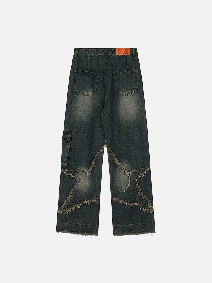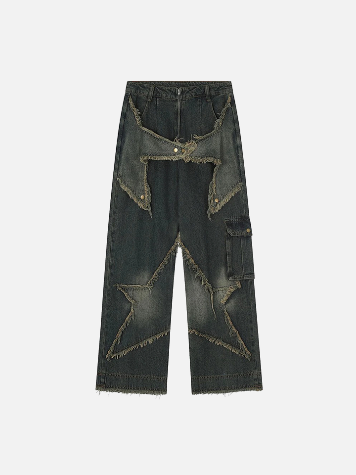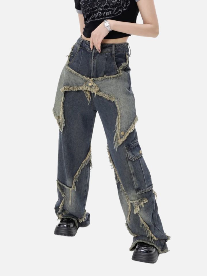 Discover freedom of expression with the Asteric Baggy Jeans 'Destroyed'. Crafted in cotton denim for maximum comfort, its star patchwork detail adds a unique touch. Celebrate your individuality with authentic style. Dress with confidence, dress with Asteric.