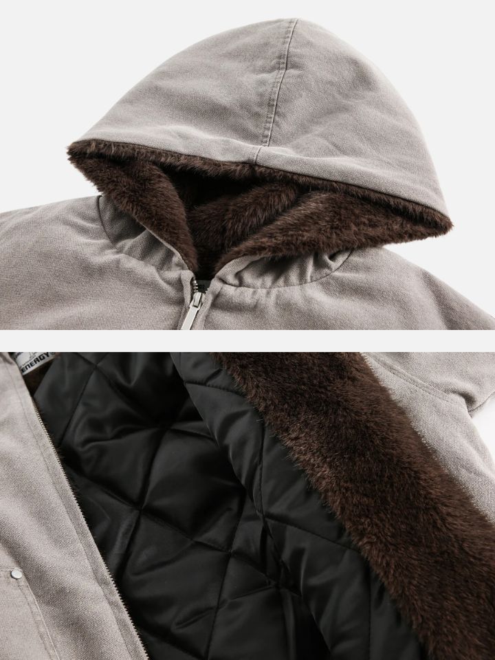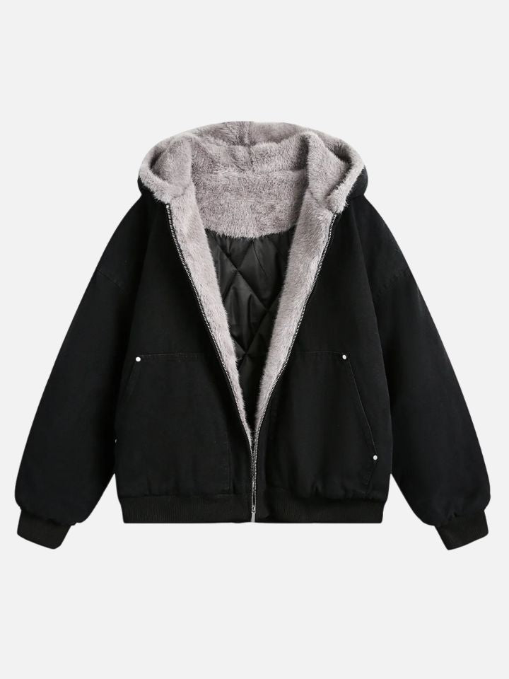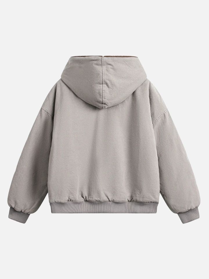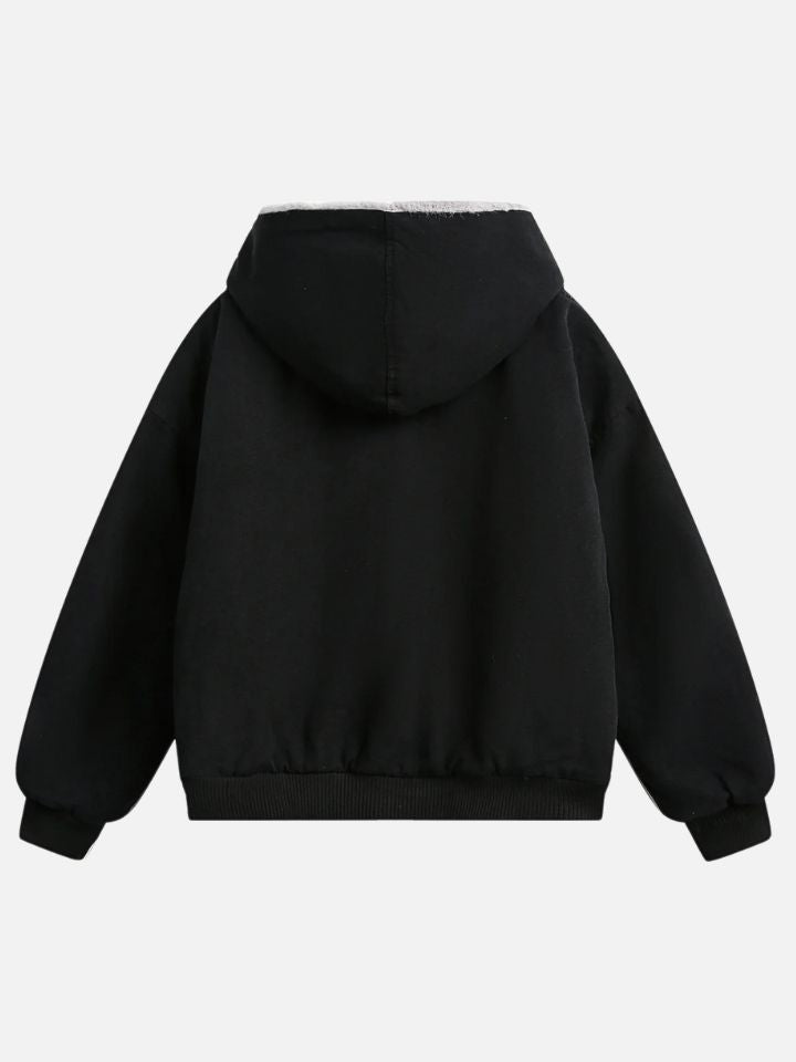 This jacket arrives with everything: a relaxed silhouette that commands presence and a hood ready for whatever the streets bring. Cold-weather armor, streetwear edition.