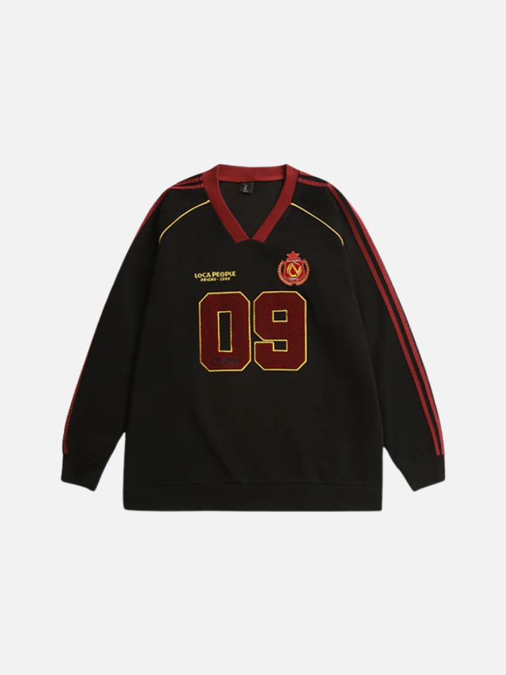 The Asteric "Crimson 09" Sweater pairs cotton blend comfort with authentic aesthetics. A black base with bold details — the "09" chest print, contrasting side stripes, and logo hits make this one impossible to overlook.