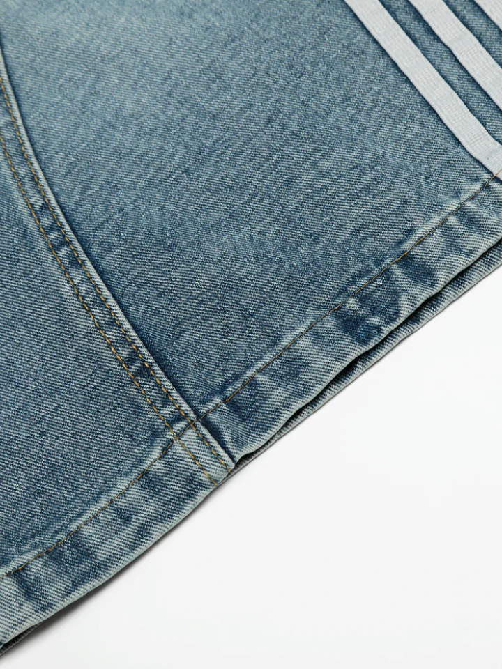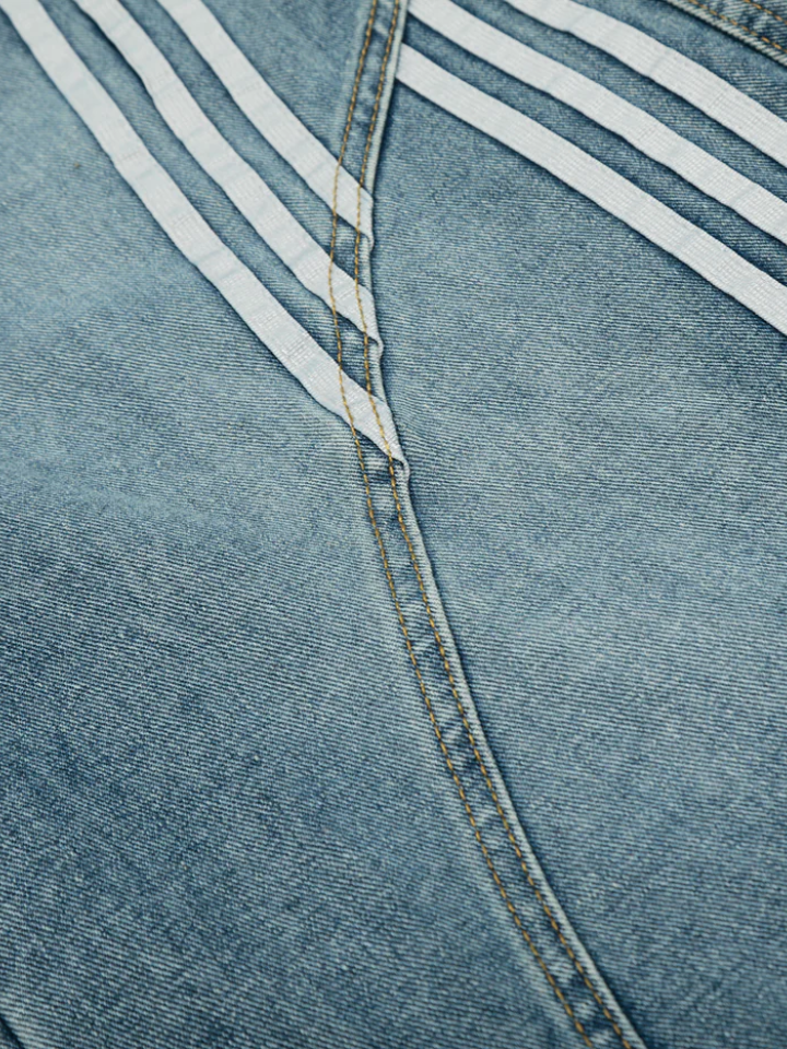 The Jorts & Shorts 'Neblina' is a stripe-vintage jort that mixes horizontal stripe pattern with a cloudy, neblina-wash finish. The combination creates a soft, textured surface that still holds shape.